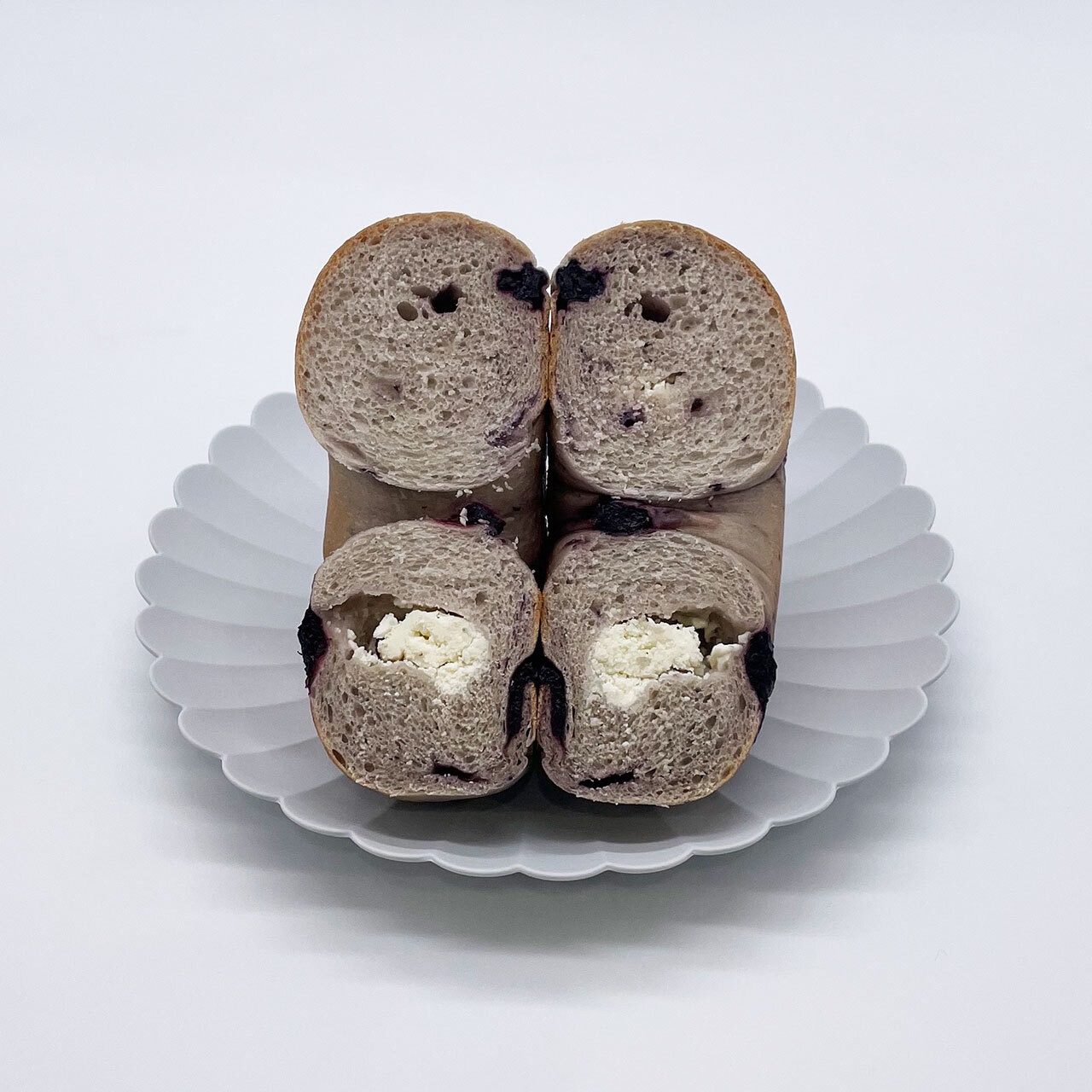 原材料名:小麦粉(小麦(北海道産))、クリームチーズ、ブルーベリー、素焚糖、酵母、塩/乳化剤