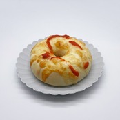 原材料名:小麦粉(小麦(北海道産))、ナチュラルチーズ、明太子、素焚糖、酵母、塩/調味料(アミノ酸)、増粘剤(加工澱粉、増粘多糖類)、酸化防止剤(ビタミンC)、着色料(赤40、黄5)、発色剤(亜硝酸Na)、酵素、(一部に小麦・大豆・ゼラチンを含む)