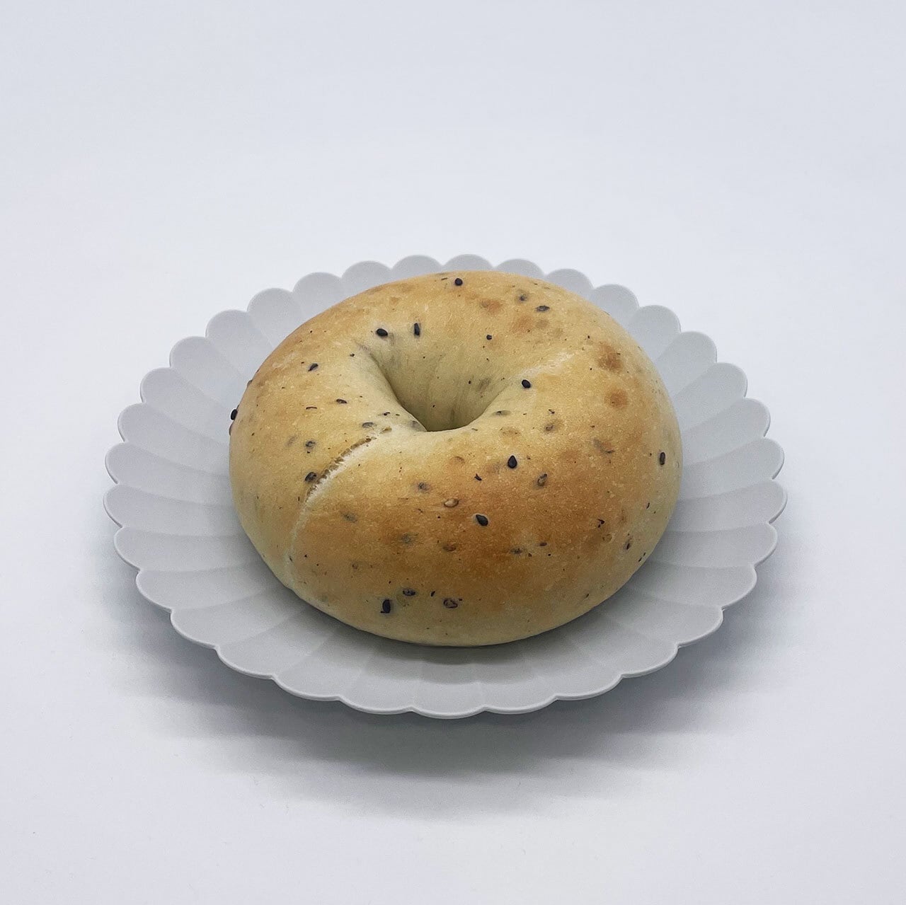 国産の黒ごまを生地に混ぜ、ベーグルの中に角切りにした国産のさつまいもを入れて焼いています。