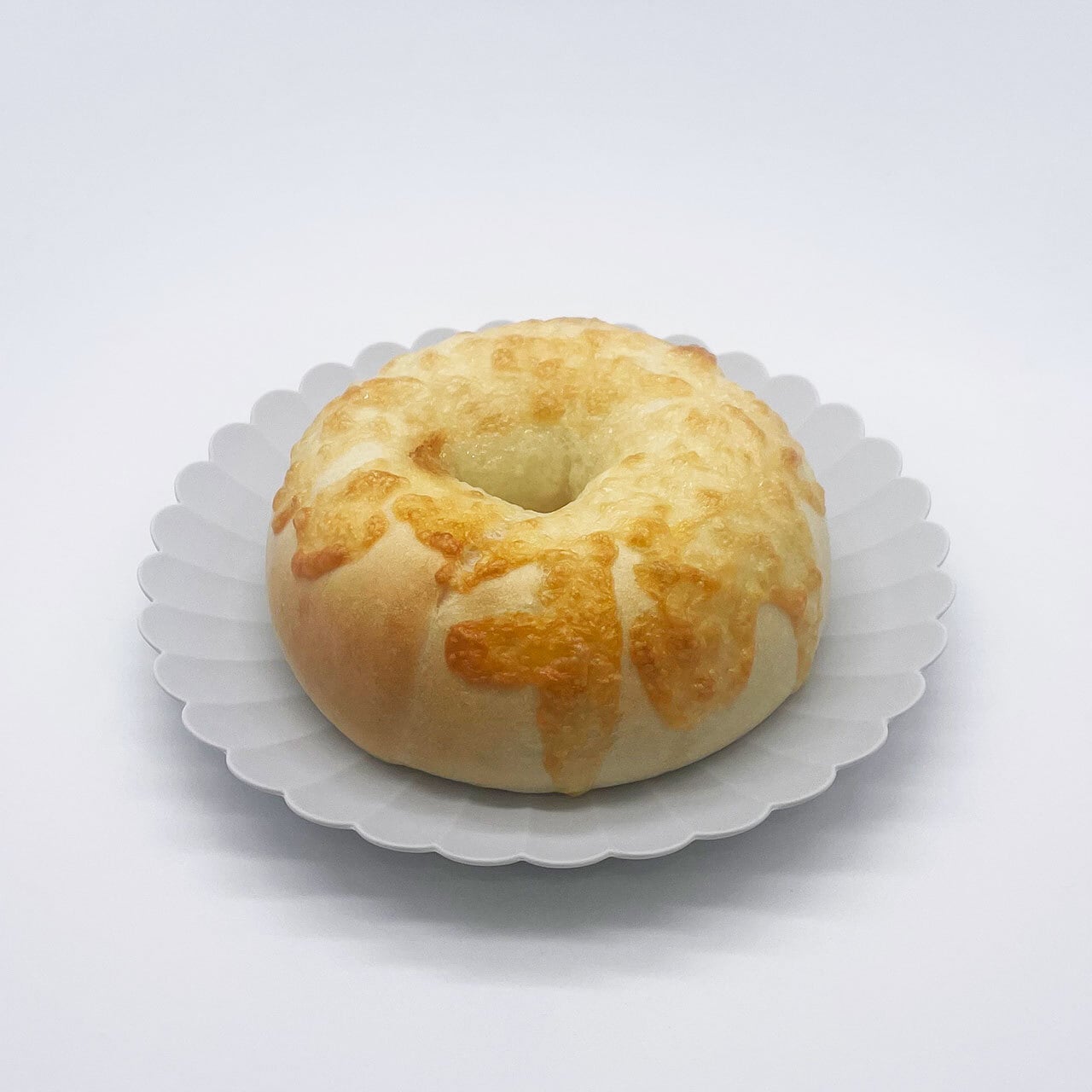 プレーン生地の中に北海道産の枝豆を入れ、よつ葉乳業社の北海道十勝産の良質な生乳から作られたシュレッドチーズ(セルロース不使用)と沖縄産の粗塩をのせて焼いています。