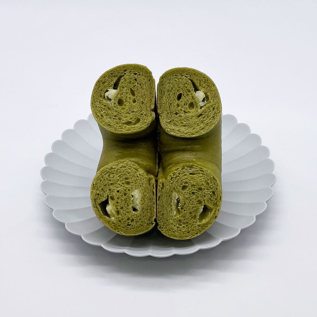 京都産の一番茶から作られた宇治抹茶を生地に混ぜ、ベーグルの中には北海道産のミルクと北海道産の砂糖を使って作られた北海道ピュアホワイトチョコレートが入っています。