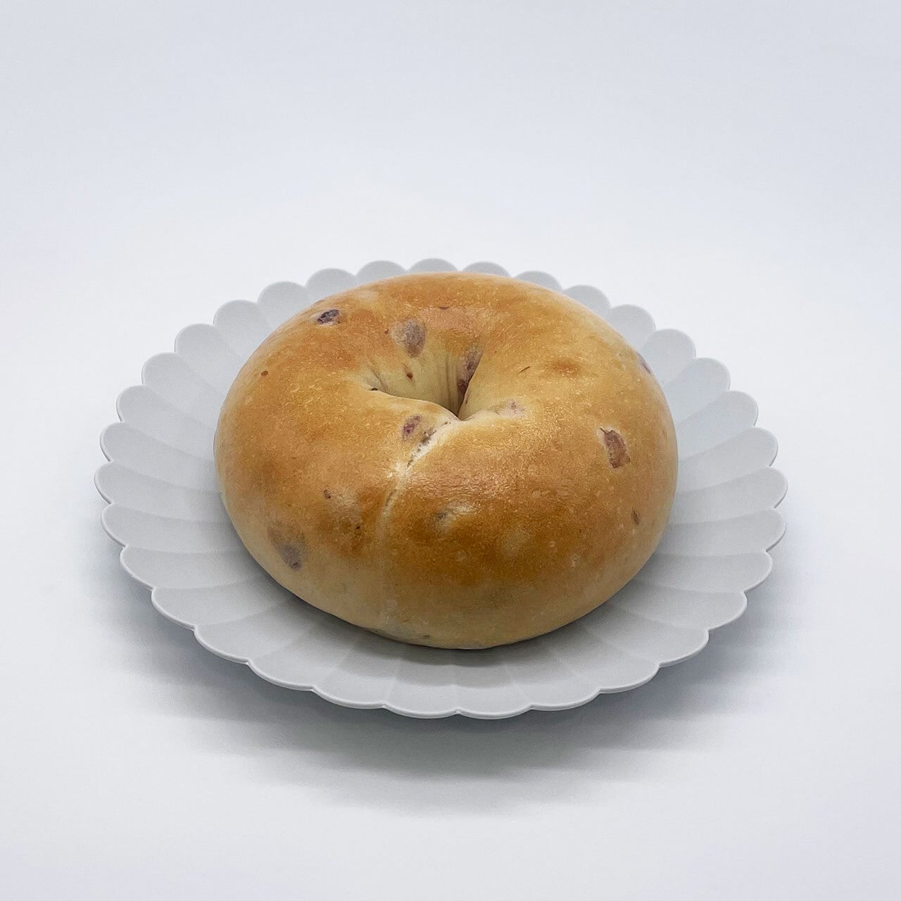 クランベリーを生地に混ぜ、ベーグルの中には北海道乳業社の北海道クリームチーズ(リュクス)が入っています。